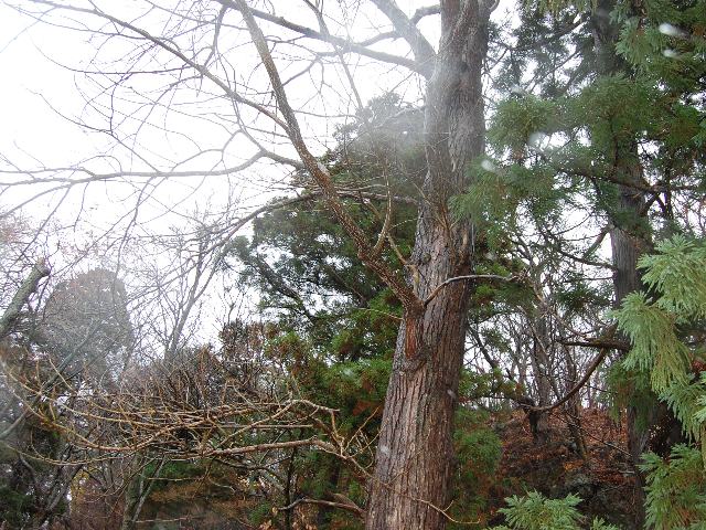 若木の樹皮は灰緑色で滑らかだが、老木は暗い灰色で縦に裂け目が入る。