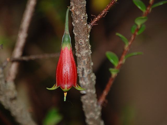 葉の脇に花径15ミリから20ミリくらいの筒状花を下垂させる。