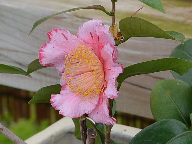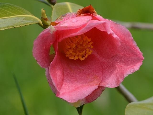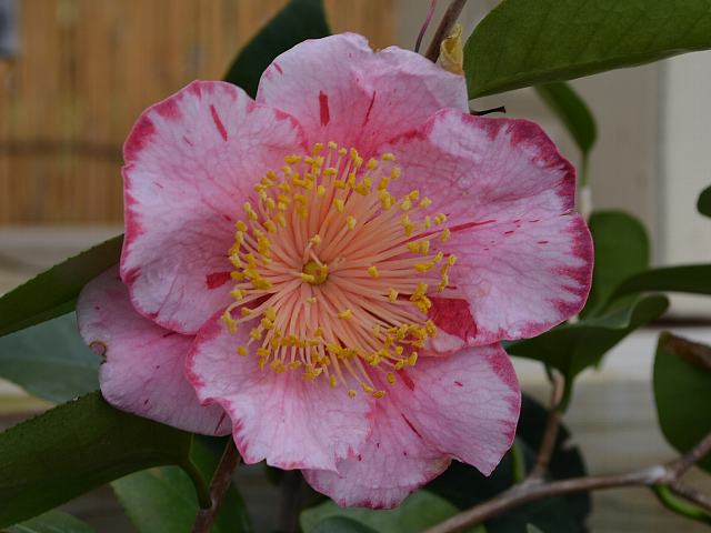 肥後椿は梅しべといって雄しべが放射状に開くのが特徴である。