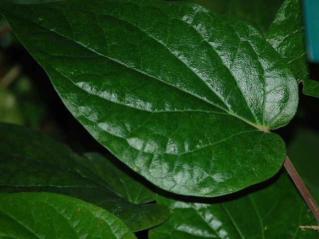 葉は心臓形で、互い違いに生える(互生)。