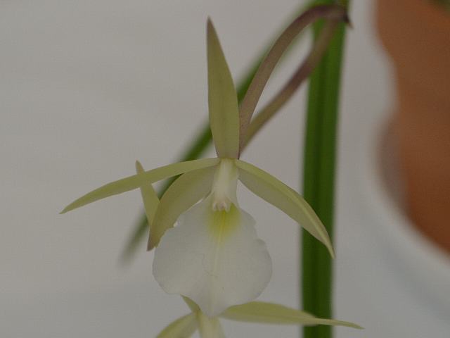 ブラッサボラ属はカトレア属などと近縁で、中南アメリカに20種くらいが分布する着生種である。