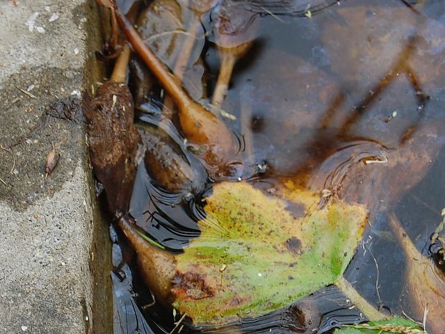 泥の中に根を伸ばし、菱形の葉がたくさん水面に浮く。