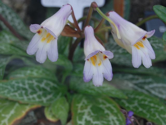葉の質は分厚く、葉脈に沿って銀白色の斑が入る。