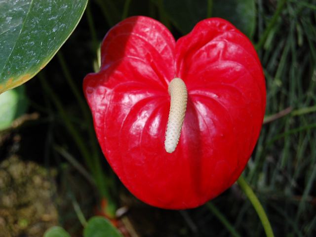 大紅団扇(オオベニウチワ)はサトイモ科ベニウチワ属(アンスリウム属)の常緑多年草である。