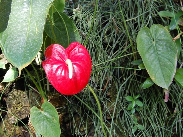 英名はフラミンゴフラワー(flamingo flower)という。