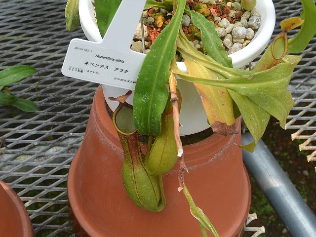 ネペンテス・アラタはウツボカズラ科ウツボカズラ属(ネペンテス属)の蔓性常緑低木である。