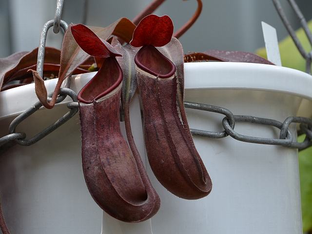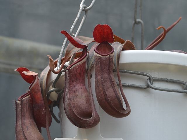 変異が多い種で、捕虫袋の色は緑色や赤のものがある。