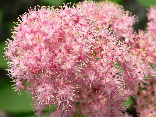 茎先に円錐花序(枝分かれして全体が円錐状に見える)を出し、白やクリーム色、ピンクなどの小さな花をたくさんつける。