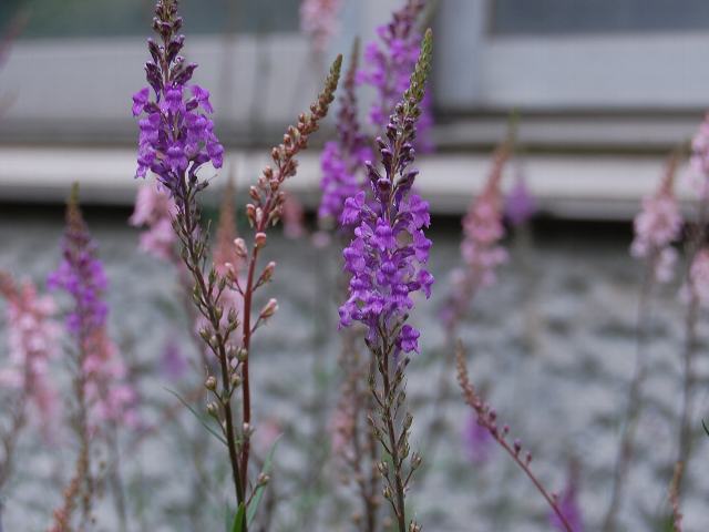 長い花穂を伸ばし、淡い紫色やピンクの唇形の花をたくさんつける。