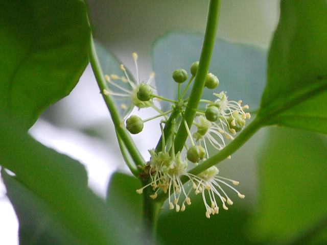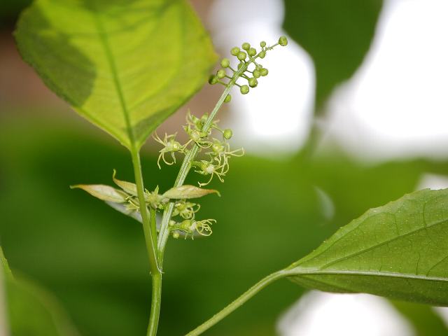 葉の脇から総状花序(柄のある花が花茎に均等につく)を出し、黄緑色の花をつける。