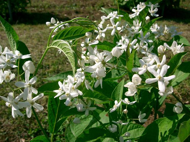 茎先に出た数個の花柄に花径2センチくらいの白い花をたくさんつける。